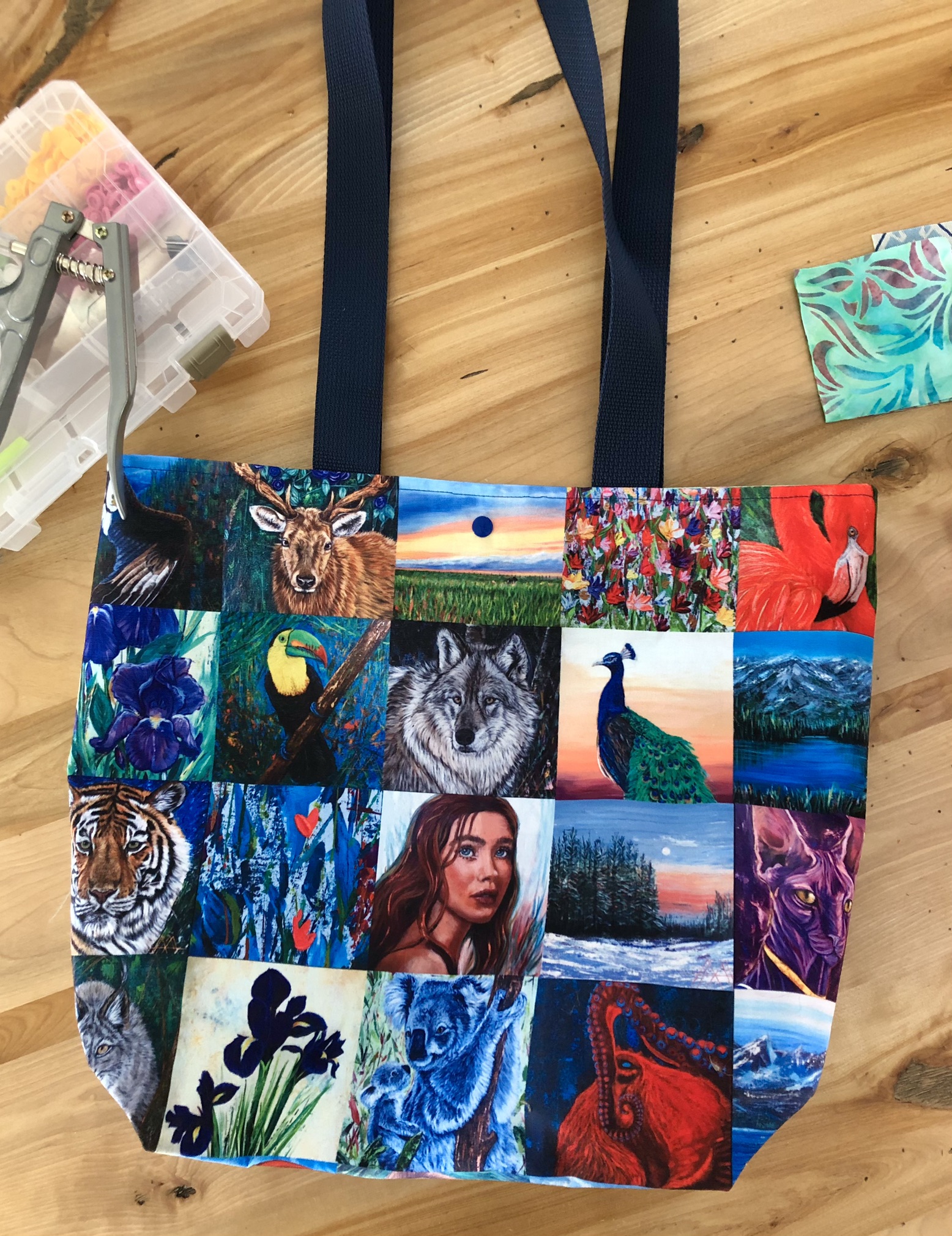 Fait à la main au Québec - chaque modèle est unique - les couleurs de l'endos, des anses et du tissu intérieur peuvent varier